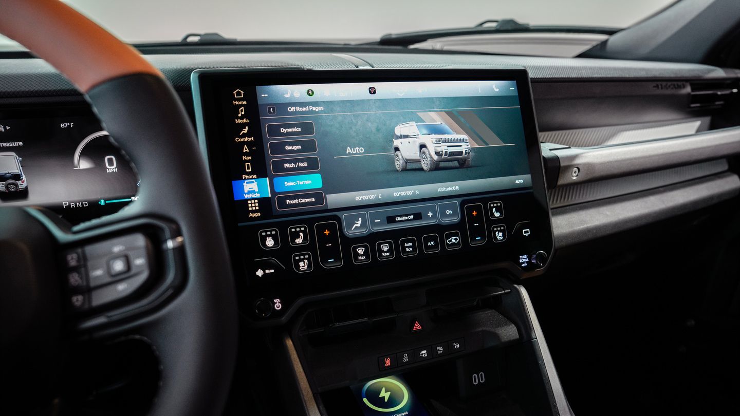 The Moab trim offers an estimated 370 kilometres (230 miles) of range at launch, with late-availability trims reaching up to 400 kilometres (250 miles). Combined with standard electric 4x4 and instant torque delivery, the Recon provides confident traction across varying terrain and weather conditions common in British Columbia.